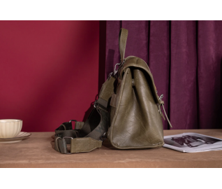 Made of PU leather, this convertible satchel/backpack/crossbody