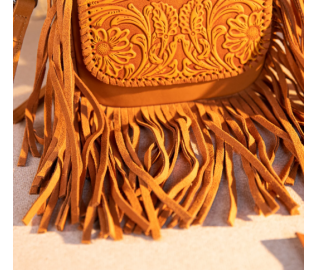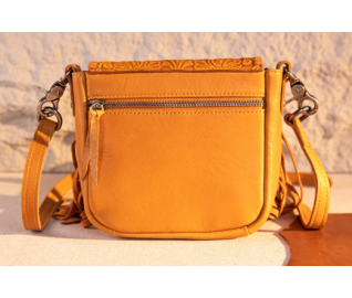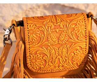 Leather Tooled Fringe Vintage Pattern Crossbody - Leaf Yellow