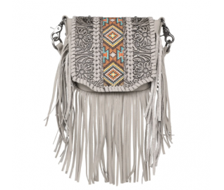Leather Tooled Collection Fringe Mixed Crossbody- White