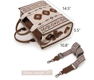 • Detachable/adjustable Aztec print crossbody strap included