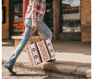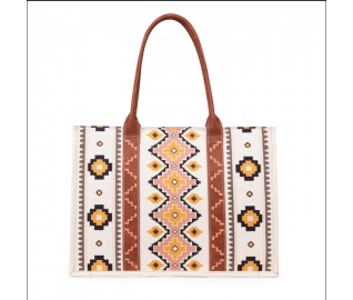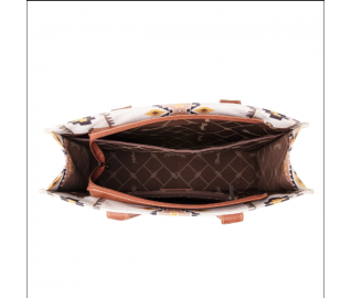 TB Dual Sided Square Print Canvas Wide Tote - Beige
