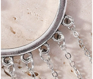TB's Rustic Beaded Long Dangle Chain Beaded Ear Cuff - Silver