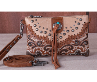 TW Collection Embroidered Scroll Collection Clutch - Brown