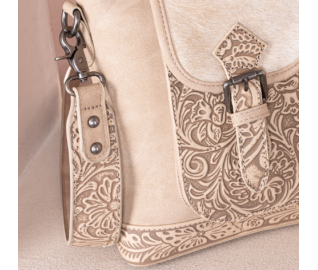 • Floral tooled and genuine hair-on cowhide